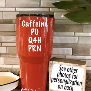 {"id":4347987132475,"title":"Caffeine PO Q4H PRN Tumbler","handle":"stainless-steel-tumbler-like-yeti-cup-doctor-nurse-coffee-cup-po-q4h-prn-nursing-school-gift-nurse-graduation-gift-caffeine-every-4-hours","description":"\u003cp\u003e\u003cspan\u003eThis funny Nurse tumbler or funny doctor gift is for a Double Walled Vacuum Sealed Tumbler with a Caffeine PO Q4H PRN (Caffeine every 4 hours as needed), a stethoscope, and the option of adding a name. These make a funny gift for a nurse or doctor to show appreciation or a nurse graduation gift. \u003c\/span\u003eThese are great for men and women. \u003c\/p\u003e\n\u003cp\u003e\u003cspan\u003eThese tumblers are equally as good as Yeti or RTIC to keep your beverage ICE COLD and STEAMING HOT. They have been tested against other brands and can hold ice for many hours. They are BPA free tumblers.\u003c\/span\u003e\u003c\/p\u003e\n\u003cp\u003e****At checkout, add to the NOTES BOX on the CART PAGE:\u003c\/p\u003e\n\u003cp\u003e1. If you choose the option of adding a name to the back, specify the Name.\u003c\/p\u003e\n\u003cp\u003e\u003cspan\u003eThis vinyl decal is made from high quality 6 year outdoor Oracal vinyl. Hand washing only recommended. Not dishwasher safe.\u003c\/span\u003e\u003c\/p\u003e","published_at":"2020-01-05T18:50:42-06:00","created_at":"2019-12-12T21:26:11-06:00","vendor":"The Artsy Spot","type":"tumblers","tags":["doctor","funny","funny nurse","funny sayings","nurse","nurse appreciation","nurse gift","personalized gift","print order","regular","stainless","tumbler"],"price":2200,"price_min":2200,"price_max":3000,"available":true,"price_varies":true,"compare_at_price":null,"compare_at_price_min":0,"compare_at_price_max":0,"compare_at_price_varies":false,"variants":[{"id":31161595691067,"title":"20 oz silver tumbler","option1":"20 oz silver tumbler","option2":null,"option3":null,"sku":"","requires_shipping":true,"taxable":true,"featured_image":null,"available":true,"name":"Caffeine PO Q4H PRN Tumbler - 20 oz silver tumbler","public_title":"20 oz silver tumbler","options":["20 oz silver tumbler"],"price":2200,"weight":771,"compare_at_price":null,"inventory_management":"shopify","barcode":null,"requires_selling_plan":false,"selling_plan_allocations":[]},{"id":31161595723835,"title":"20 oz silver w\/ name","option1":"20 oz silver w\/ name","option2":null,"option3":null,"sku":"","requires_shipping":true,"taxable":true,"featured_image":null,"available":true,"name":"Caffeine PO Q4H PRN Tumbler - 20 oz silver w\/ name","public_title":"20 oz silver w\/ name","options":["20 oz silver w\/ name"],"price":2400,"weight":771,"compare_at_price":null,"inventory_management":"shopify","barcode":null,"requires_selling_plan":false,"selling_plan_allocations":[]},{"id":31161595756603,"title":"30 oz silver tumbler","option1":"30 oz silver tumbler","option2":null,"option3":null,"sku":"","requires_shipping":true,"taxable":true,"featured_image":null,"available":true,"name":"Caffeine PO Q4H PRN Tumbler - 30 oz silver tumbler","public_title":"30 oz silver tumbler","options":["30 oz silver tumbler"],"price":2500,"weight":771,"compare_at_price":null,"inventory_management":"shopify","barcode":null,"requires_selling_plan":false,"selling_plan_allocations":[]},{"id":31161595789371,"title":"30 oz silver w\/ name","option1":"30 oz silver w\/ name","option2":null,"option3":null,"sku":"","requires_shipping":true,"taxable":true,"featured_image":null,"available":true,"name":"Caffeine PO Q4H PRN Tumbler - 30 oz silver w\/ name","public_title":"30 oz silver w\/ name","options":["30 oz silver w\/ name"],"price":2700,"weight":771,"compare_at_price":null,"inventory_management":"shopify","barcode":null,"requires_selling_plan":false,"selling_plan_allocations":[]},{"id":31161595822139,"title":"20 oz black tumbler","option1":"20 oz black tumbler","option2":null,"option3":null,"sku":"","requires_shipping":true,"taxable":true,"featured_image":null,"available":true,"name":"Caffeine PO Q4H PRN Tumbler - 20 oz black tumbler","public_title":"20 oz black tumbler","options":["20 oz black tumbler"],"price":2500,"weight":771,"compare_at_price":null,"inventory_management":"shopify","barcode":null,"requires_selling_plan":false,"selling_plan_allocations":[]},{"id":31161595854907,"title":"20 oz black w\/name","option1":"20 oz black w\/name","option2":null,"option3":null,"sku":"","requires_shipping":true,"taxable":true,"featured_image":null,"available":true,"name":"Caffeine PO Q4H PRN Tumbler - 20 oz black w\/name","public_title":"20 oz black w\/name","options":["20 oz black w\/name"],"price":2700,"weight":771,"compare_at_price":null,"inventory_management":"shopify","barcode":null,"requires_selling_plan":false,"selling_plan_allocations":[]},{"id":31161595887675,"title":"30 oz black tumbler","option1":"30 oz black tumbler","option2":null,"option3":null,"sku":"","requires_shipping":true,"taxable":true,"featured_image":null,"available":true,"name":"Caffeine PO Q4H PRN Tumbler - 30 oz black tumbler","public_title":"30 oz black tumbler","options":["30 oz black tumbler"],"price":2800,"weight":771,"compare_at_price":null,"inventory_management":"shopify","barcode":null,"requires_selling_plan":false,"selling_plan_allocations":[]},{"id":31161595920443,"title":"30 oz black w\/name","option1":"30 oz black w\/name","option2":null,"option3":null,"sku":"","requires_shipping":true,"taxable":true,"featured_image":null,"available":true,"name":"Caffeine PO Q4H PRN Tumbler - 30 oz black w\/name","public_title":"30 oz black w\/name","options":["30 oz black w\/name"],"price":3000,"weight":771,"compare_at_price":null,"inventory_management":"shopify","barcode":null,"requires_selling_plan":false,"selling_plan_allocations":[]},{"id":31161595953211,"title":"20 oz. red tumbler","option1":"20 oz. red tumbler","option2":null,"option3":null,"sku":"","requires_shipping":true,"taxable":true,"featured_image":null,"available":true,"name":"Caffeine PO Q4H PRN Tumbler - 20 oz. red tumbler","public_title":"20 oz. red tumbler","